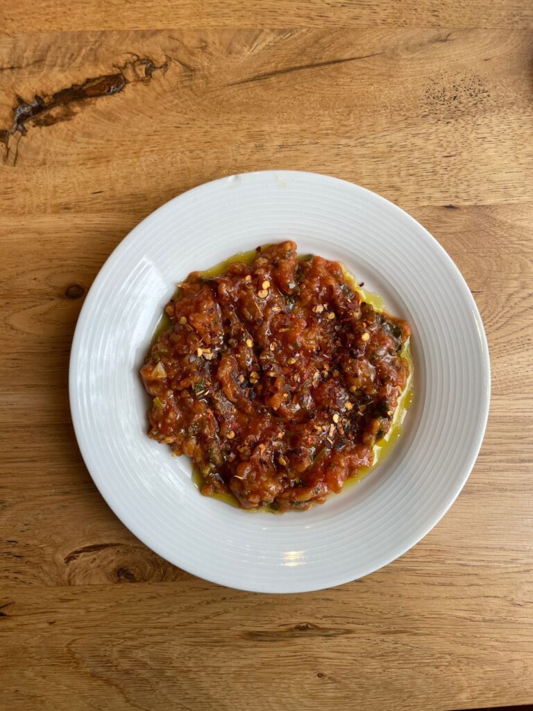 Spiced Moroccan dip of roasted eggplant and tomatoes, infused with fresh herbs.