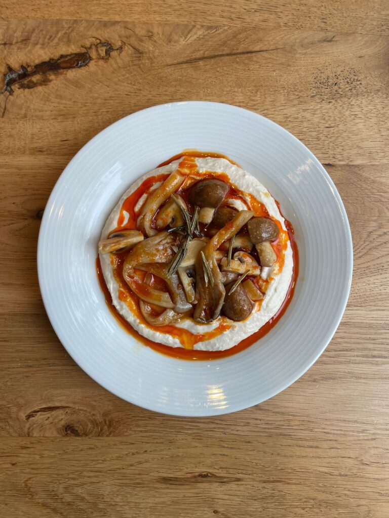 Mushrooms marinated in olive oil, garlic, spices, harissa, honey and herbs.